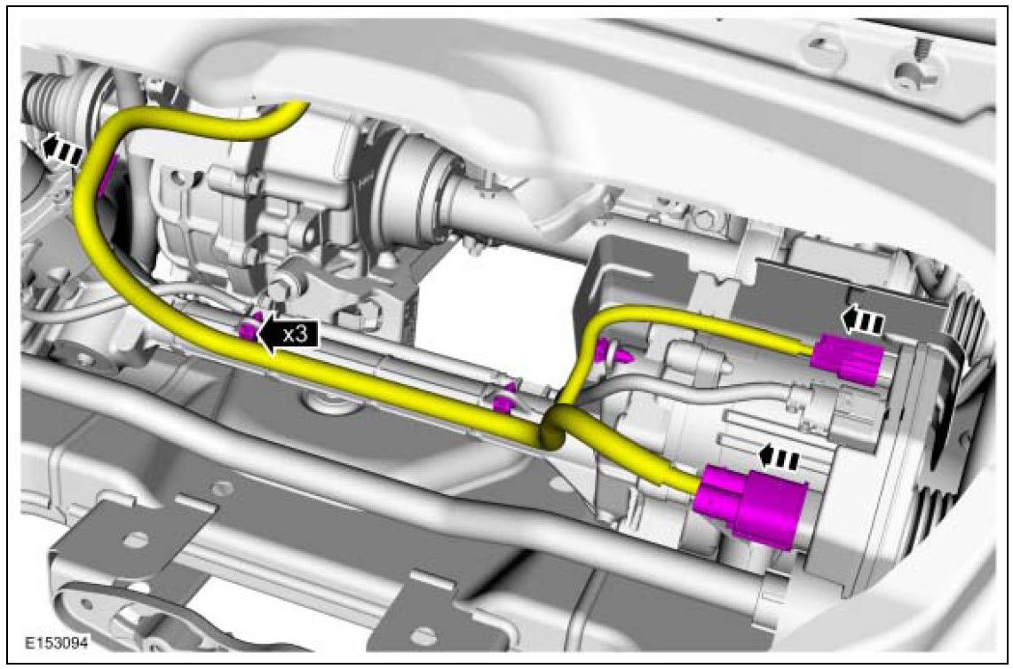 2. NOTICE: Disconnect the battery ground cable anytime the steering gear is being serviced or damage to the steering gear internal power relay may occur resulting in steering gear replacement.