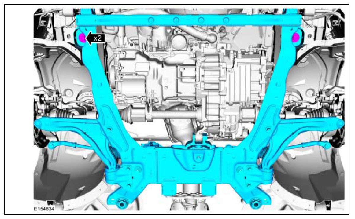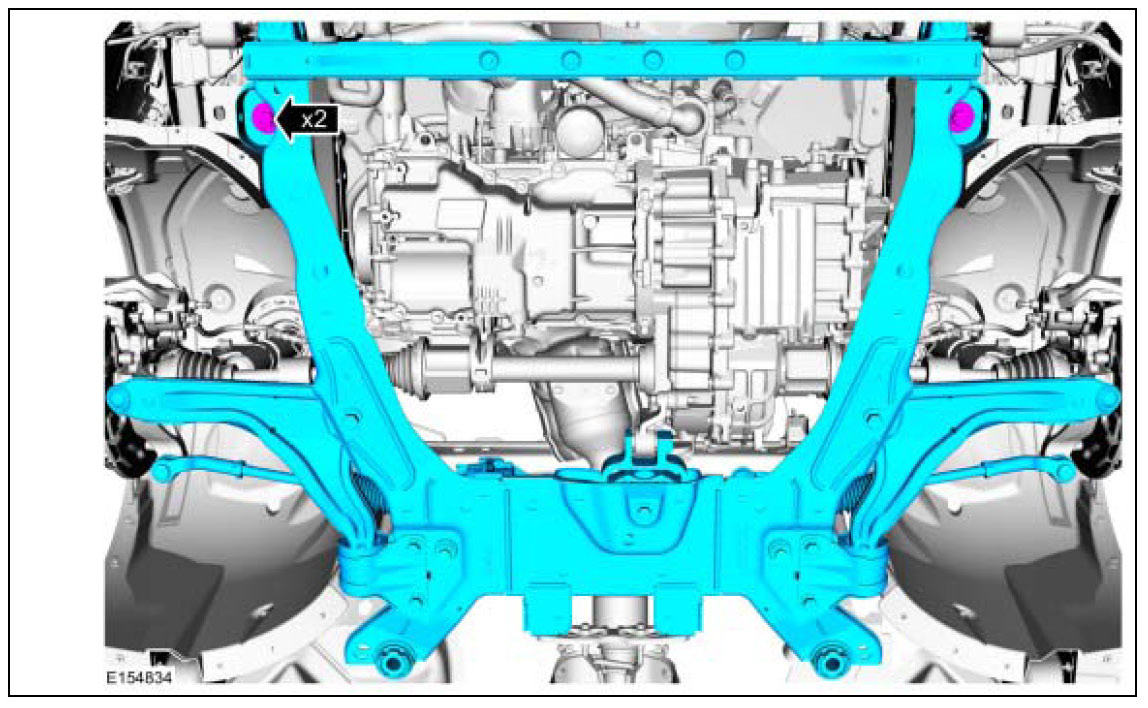 6. NOTE: While tightening the subframe bolts, make sure the front subframe does not move.