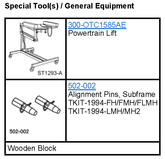Special Tool(s): 300-OTC1585AE (Powertrain Lift)