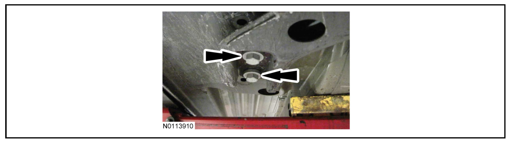 Tighten the 2 nuts for the crossmember brace to 65 Nm (48 lb-ft).