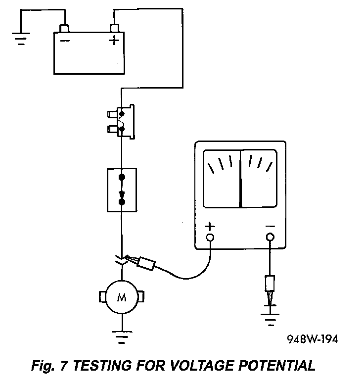 1. Connect the ground lead of a voltmeter to a known good ground (Fig. 7).