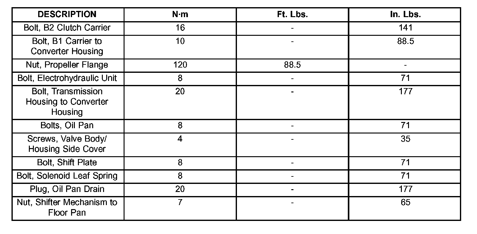 Torque Specifications: