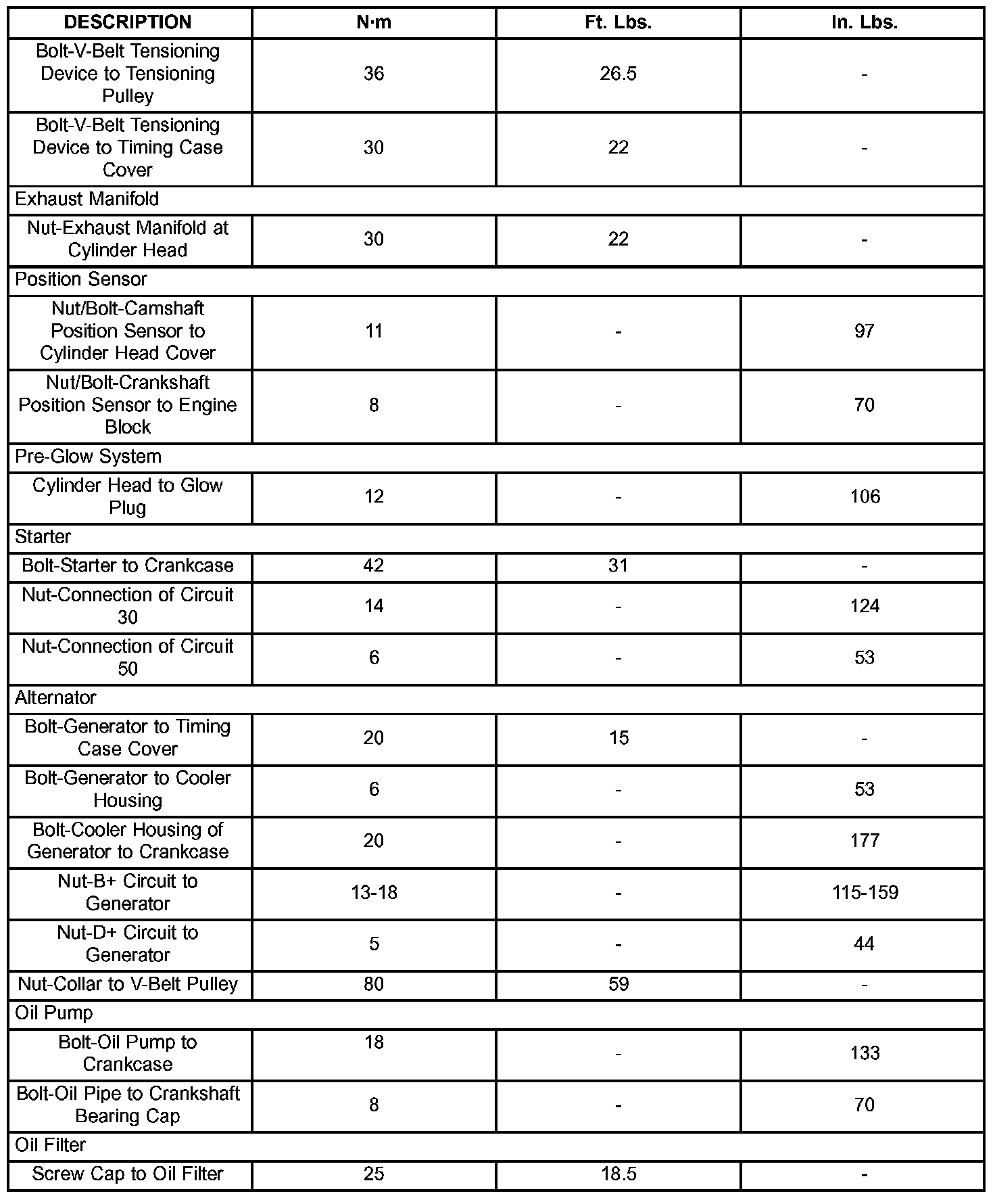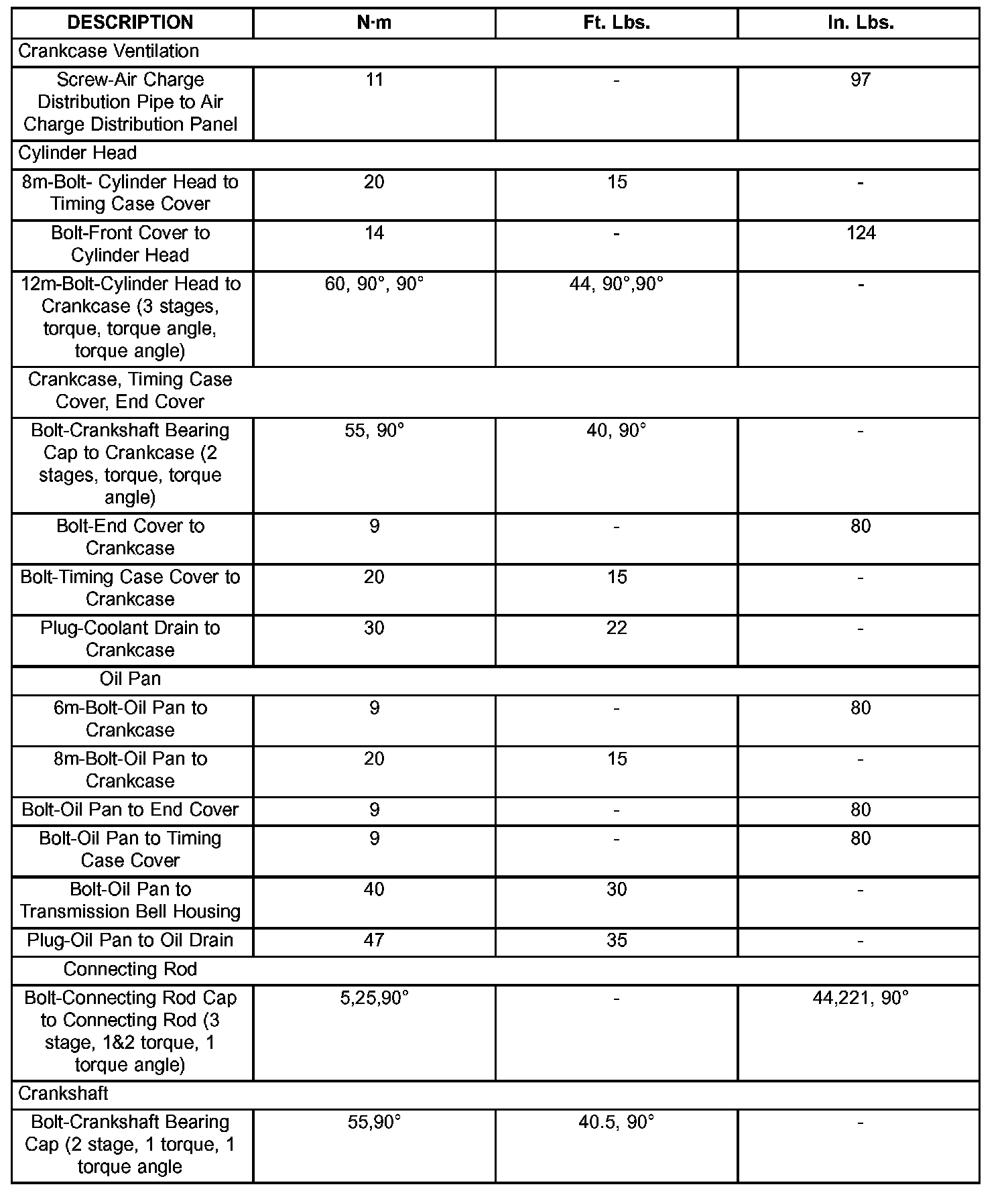 Engine Torque Specifications
