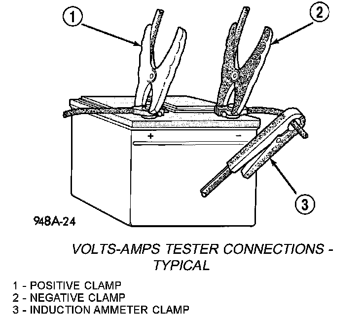 1. Connect volt-ampere tester to battery terminals. See instructions provided by manufacturer of volt-ampere tester being used.