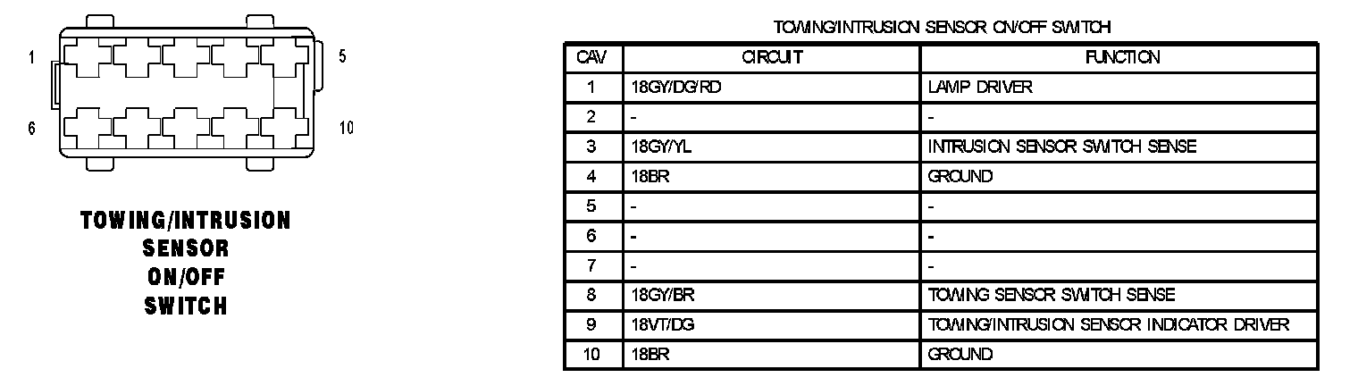 Towing/Intrusion Sensor On/Off Switch: