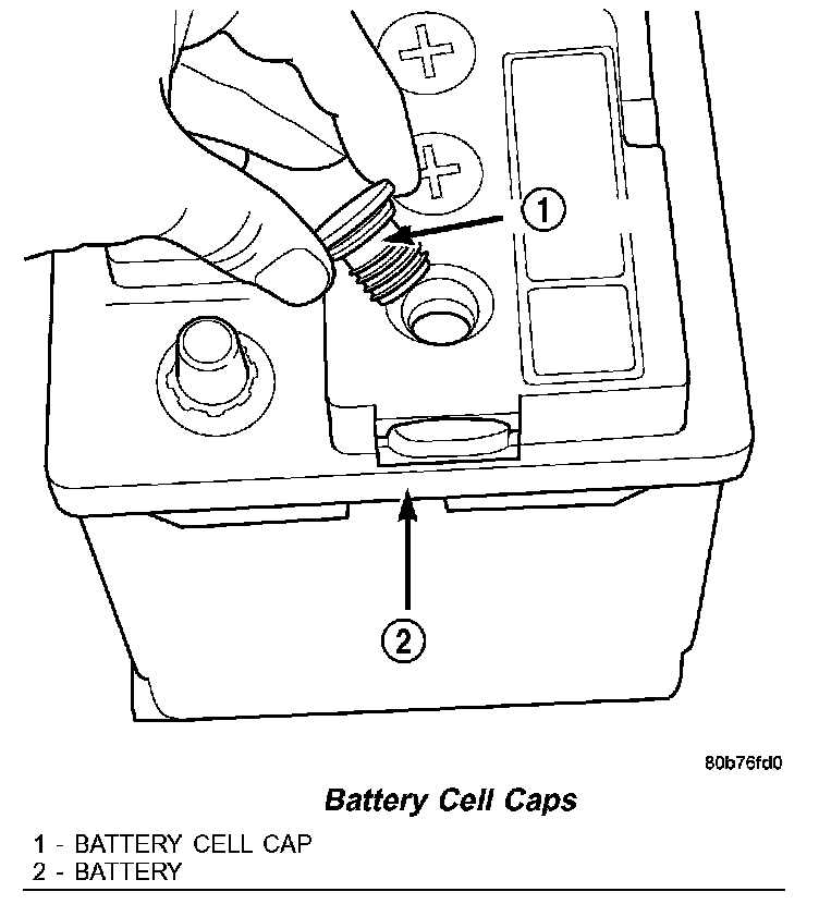 CHECKING BATTERY ELECTROLYTE LEVELBattery Cell Caps: