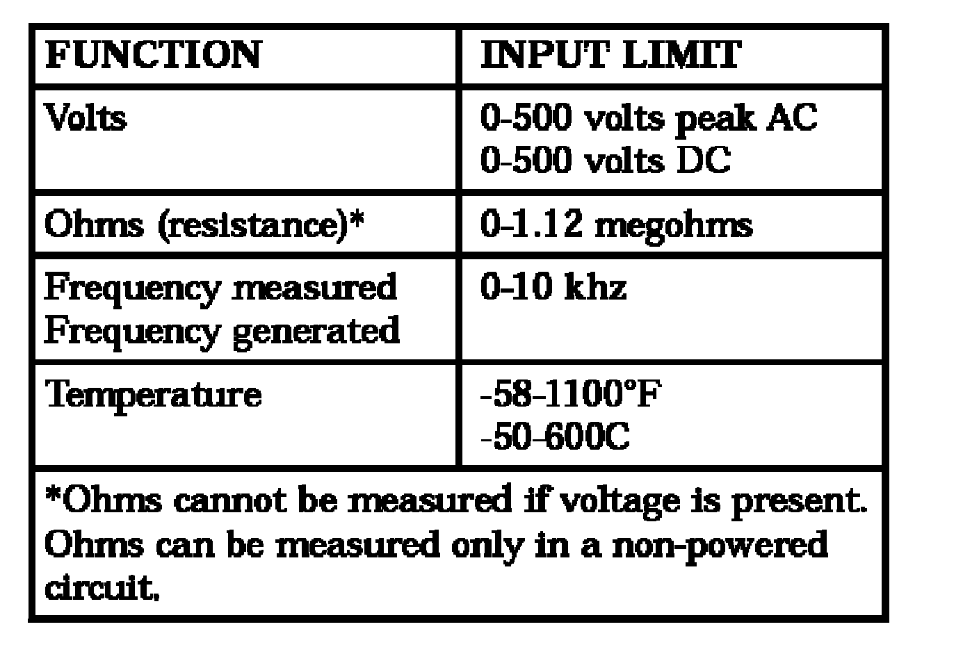 WARNING: EXCEEDING THE LIMITS OF THE DRBIII MULTIMETER IS DANGEROUS. IT CAN EXPOSE YOU TO SERIOUS OR POSSIBLY FATAL INJURY. CAREFULLY READ AND UNDERSTAND THE CAUTIONS AND THE SPECIFICATION LIMITS.