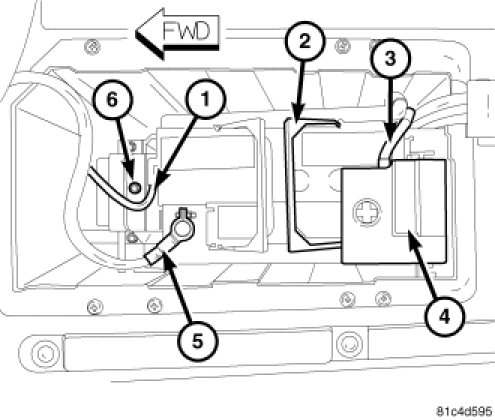 1. Position the Power Distribution Center (PDC) onto the battery positive cable clamp and install the PDC to battery positive cable clamp nut.