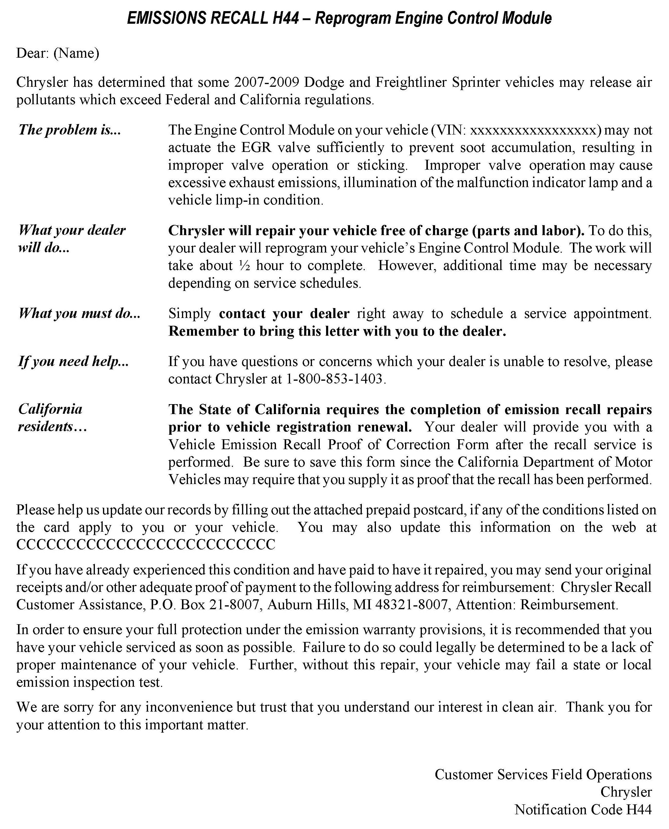 Recall H44 - Reprogram ECM For EGR System Function