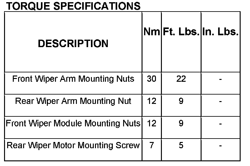 Wiper and Washer Systems: Specifications