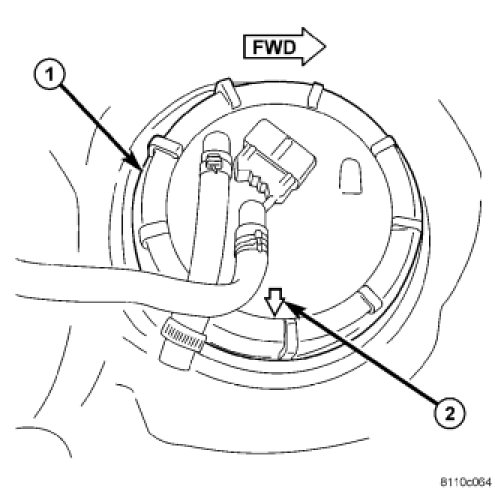 9. The fuel line fittings should be pointed to the right side of the vehicle. Rotate and position alignment arrow towards right side of vehicle (if necessary) before tightening locknut.This step must be performed to prevent the module's float from contacting the side of fuel tank.