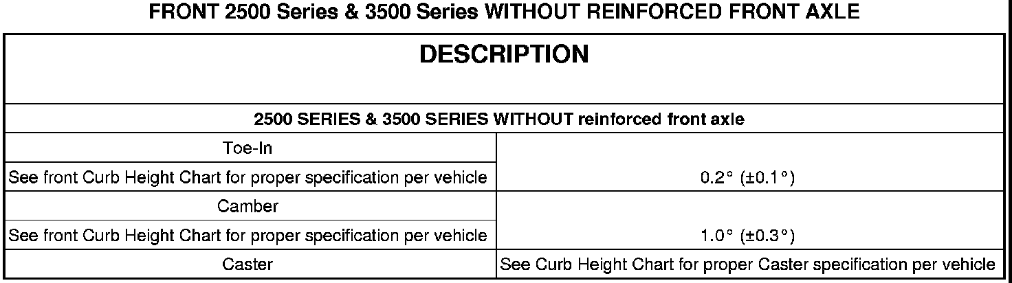 WHEEL ALIGNMENT, CURB HEIGHT, AND TORQUE SPECIFICATIONS