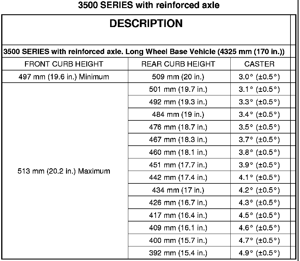 FRONT AND REAR CURB HEIGHT SPECIFICATIONS