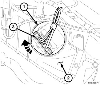 1. Position the blower motor power module (1) into the HVAC housing (2).