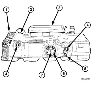 The fuel pump module is installed in the top of the fuel tank. The pump module contains the following components: