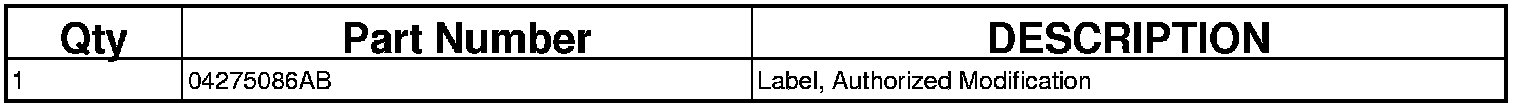 7. Type the necessary information on the "Authorized Modification Label" (p/n 04275086AB) and attach near the VECI label (SECTION 3 - AUTHORIZED MODIFICATION LABEL).