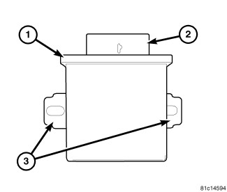 The AHLM has two integral mounts (3) that are secured by two nuts to two weld studs on the right cowl side inner panel just forward of the right front door opening. The module is concealed beneath the cowl side inner trim panel. Concealed within the molded plastic housing is the circuitry of the module, which includes a microprocessor. The module is connected through an integral connector receptacle (2) to the vehicle electrical system by a take out and connector of the vehicle wire harness.