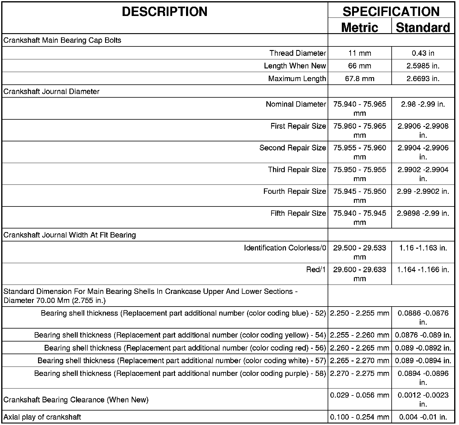 Engine - Specifications