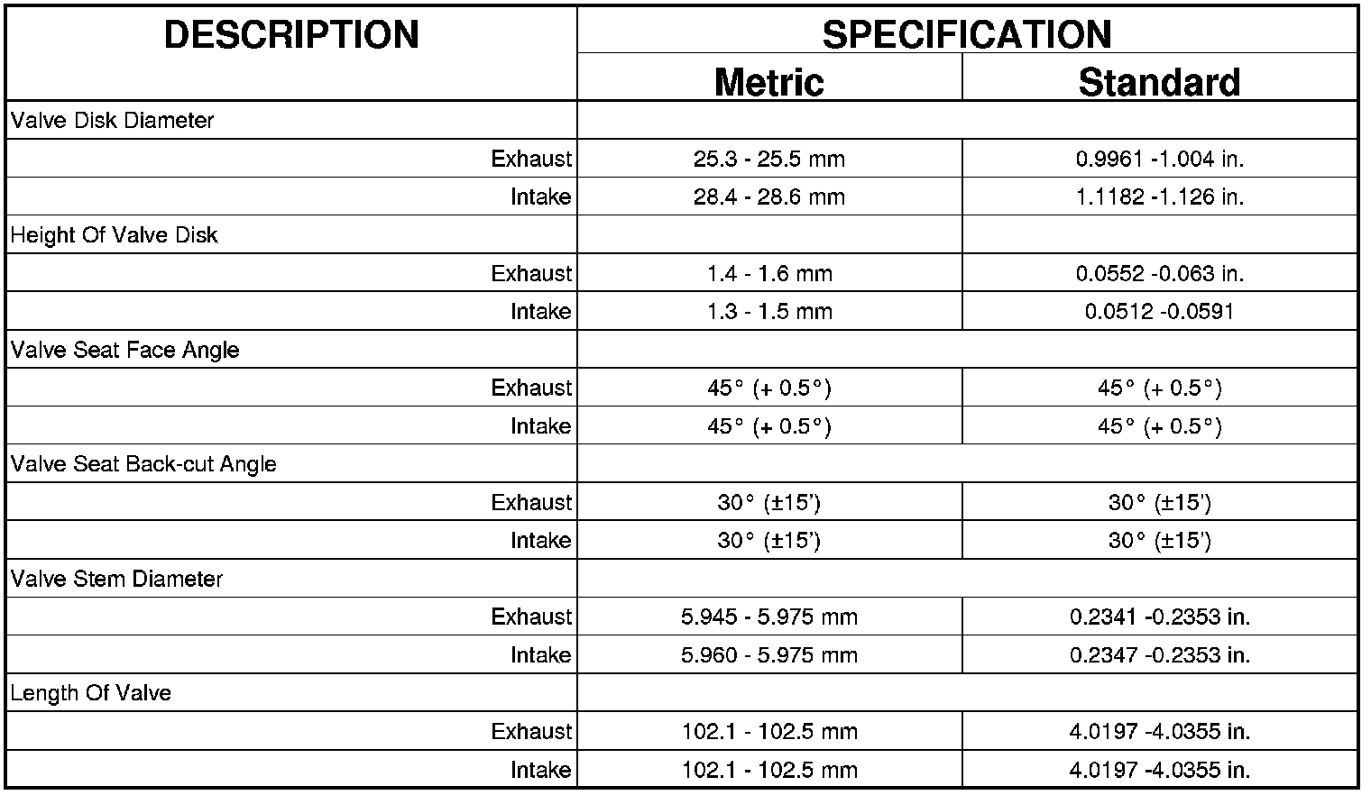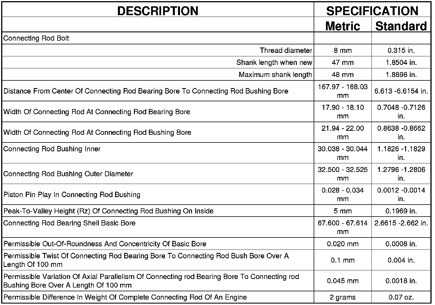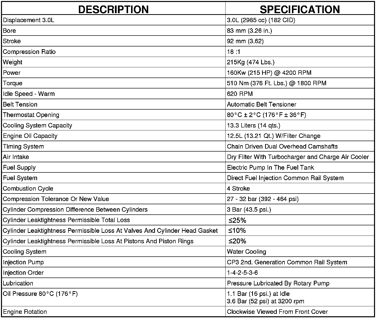 ENGINE SPECIFICATIONS