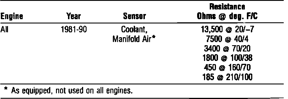 Coolant Temperature Sensor/Switch (For Computer): Specifications