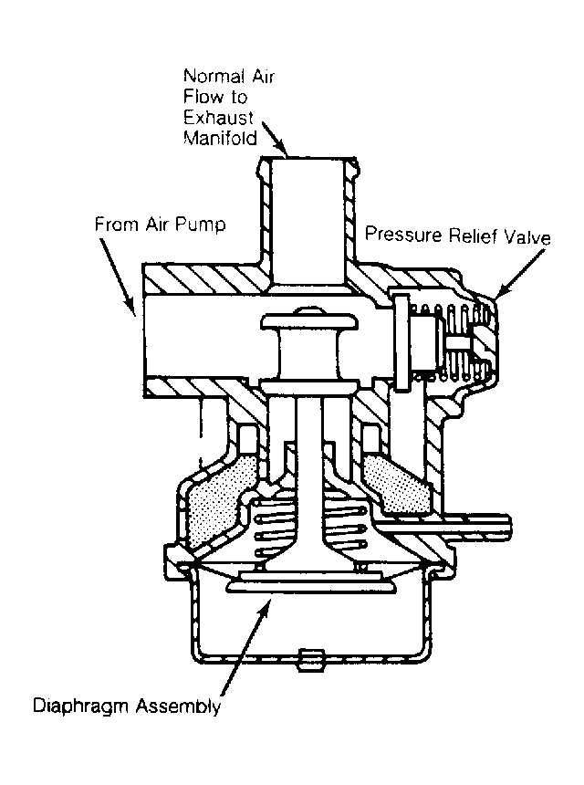 Most diverter valves also have built-in pressure relief valve, which bleeds off excessive air pump pressure to prevent damage to the system. Most diverter valves are similar. See Fig 1 and Figure . Electric diverter valve is used on V6 California models and is controlled by the Electronic Control Module (ECM).