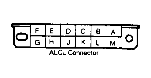 - Connect a fuel hose to throttle body feed line. Route line to a one quart, calibrated container. Apply battery voltage to terminal "G" of Assembly Line Communications Link (ALCL). See Fig 1. Fuel pump should supply 1/2 pint (240 ml) or more of fuel in 15 seconds.