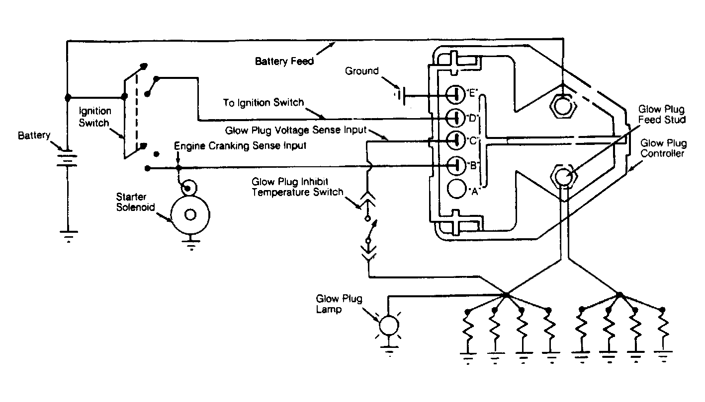 The glow plug controller provides glow plug operation after starting a cold engine. This after-start operation is initiated when the ignition switch is returned to "RUN" from the "START" position. A faulty controller may result in excessive White smoke and/or poor idle quality immediately after starting. The following procedure checks for proper operation of controller circuit. Ensure coolant temperature is below 80°F (27°C) before beginning test.