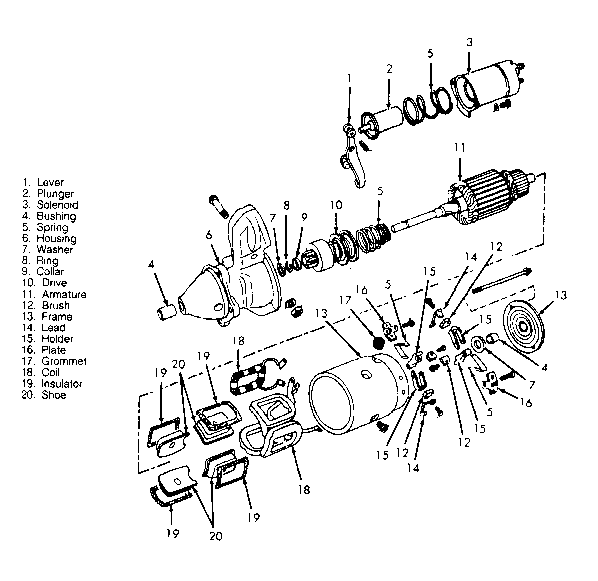 Overhaul procedures are not available from manufacturer. See Fig 1-Fig 3 for exploded views of starters. The 28MT starter is not serviceable.