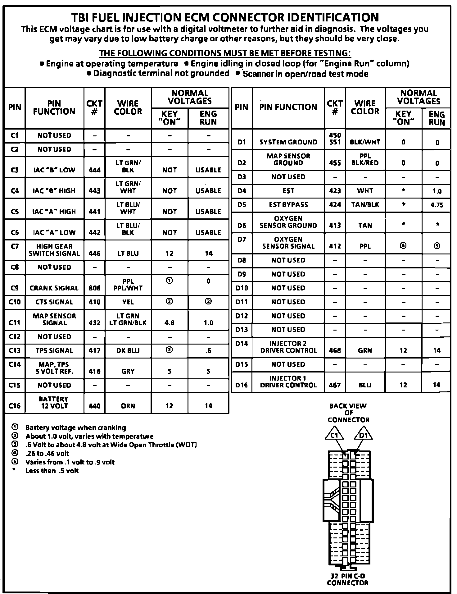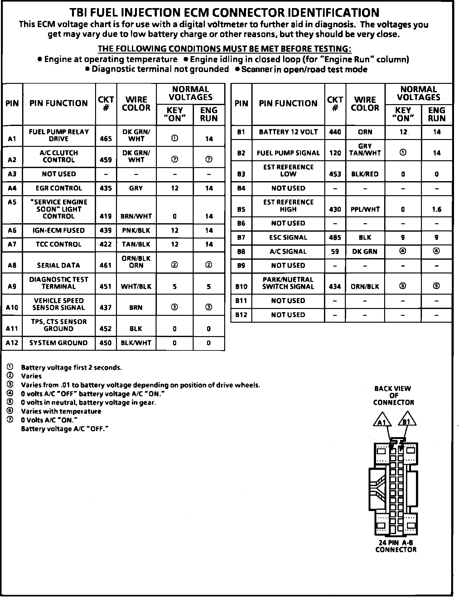 ECM Terminal Identification And Voltage Specification Part 1 Of 2: