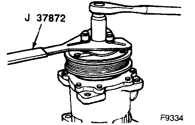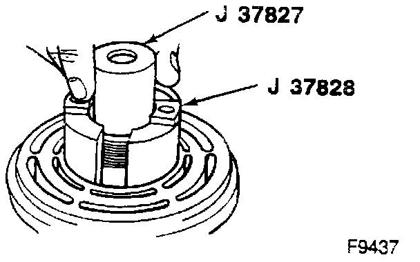 - Insert the two pins of the J 37872 into any two threaded holes of the clutch front plate (2). Hold the clutch plate stationary.