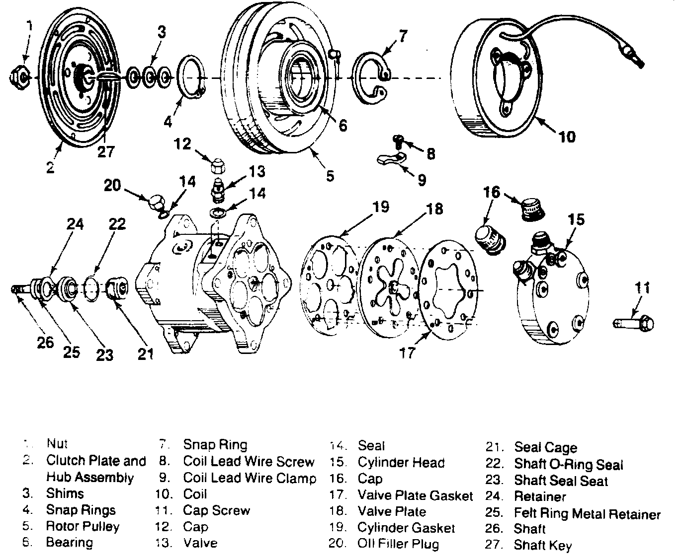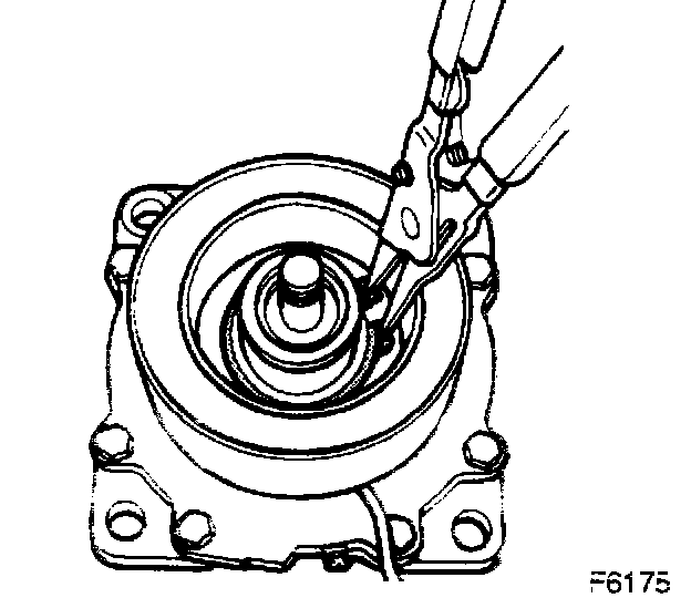- Loosen the coil lead wire from the clip on top of the compressor front housing.