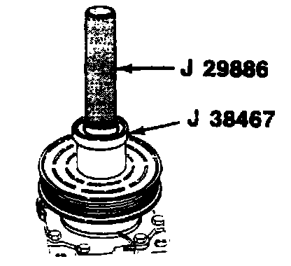 - Place J 38467 into the bearing cavity with the outer edge on the rotor bearing outer race.