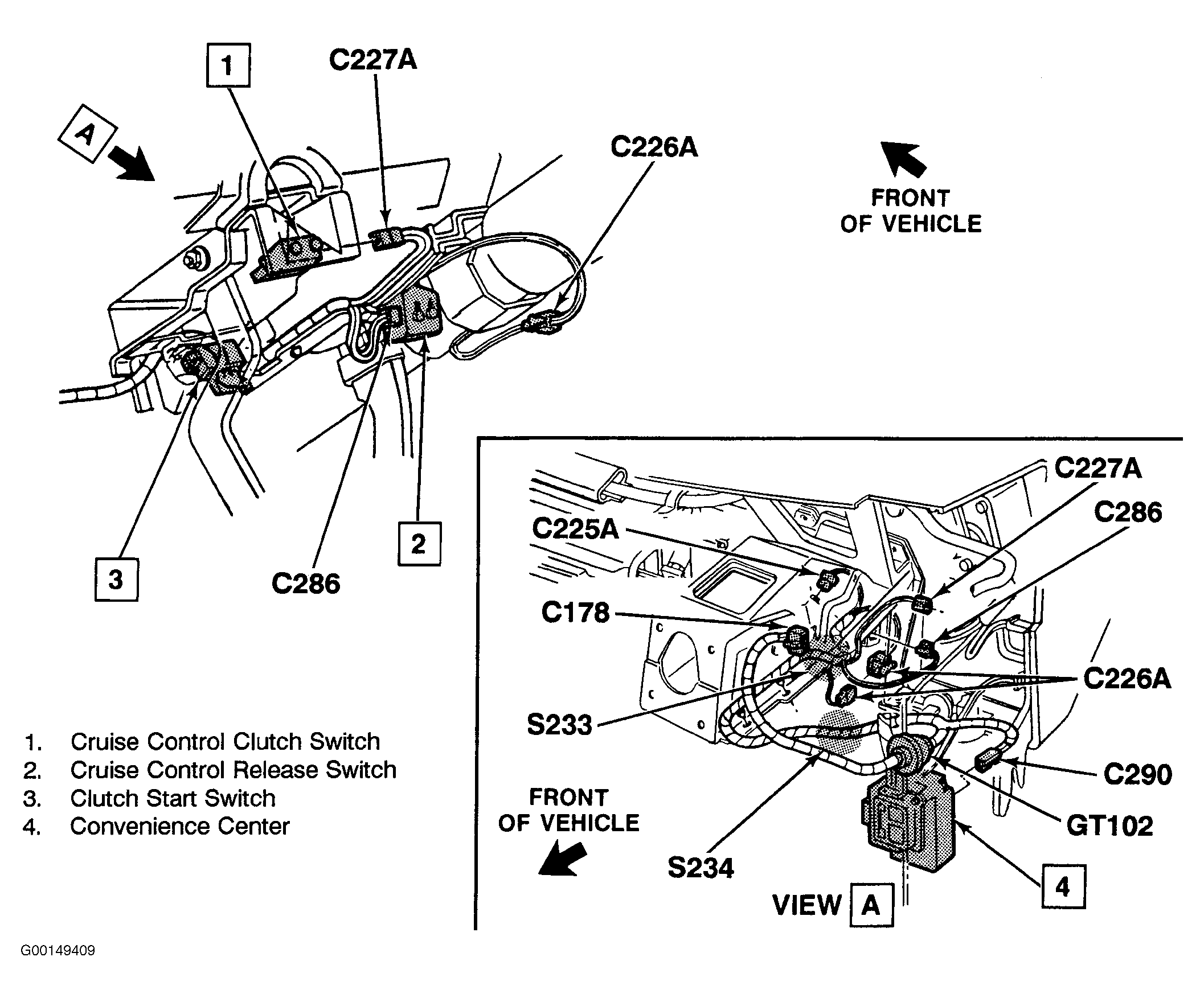 | Convenience Center | Under Left Side of Instrument Panel. See Fig 1 . |