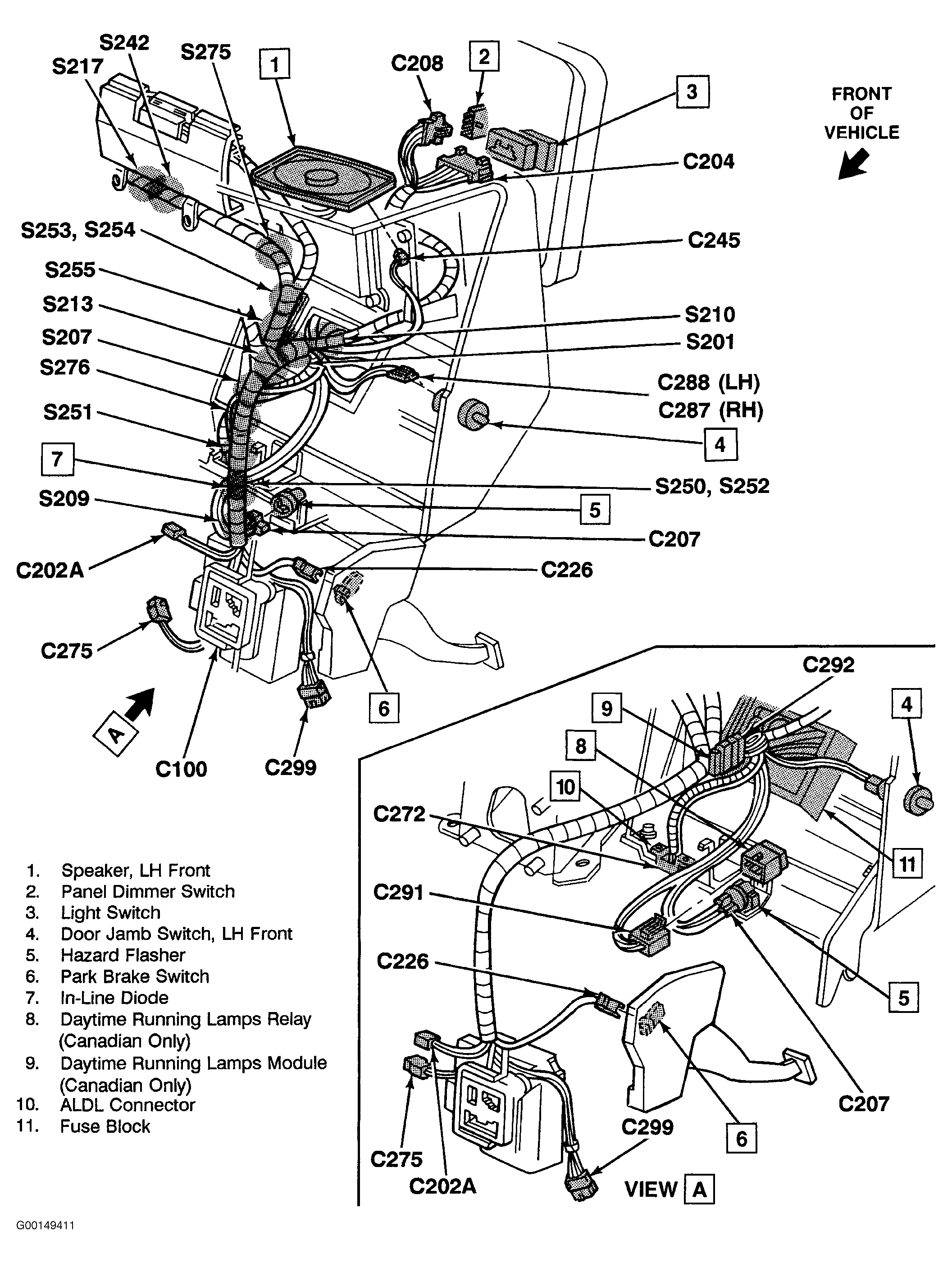 | S207 | Under Left Side Of Instrument Panel. See Fig 2 . |