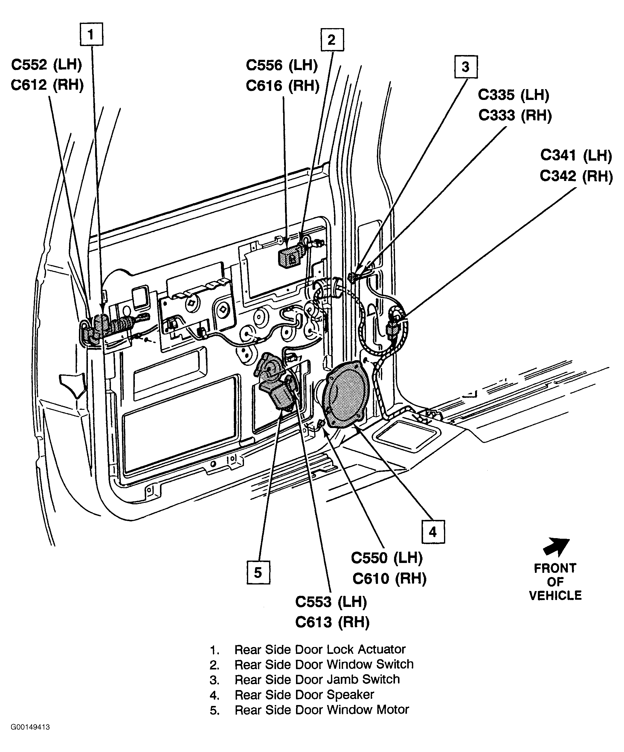 | C342 (Crew Cab, Utility & Suburban) | At Right Center Pillar. See Fig 5 . |