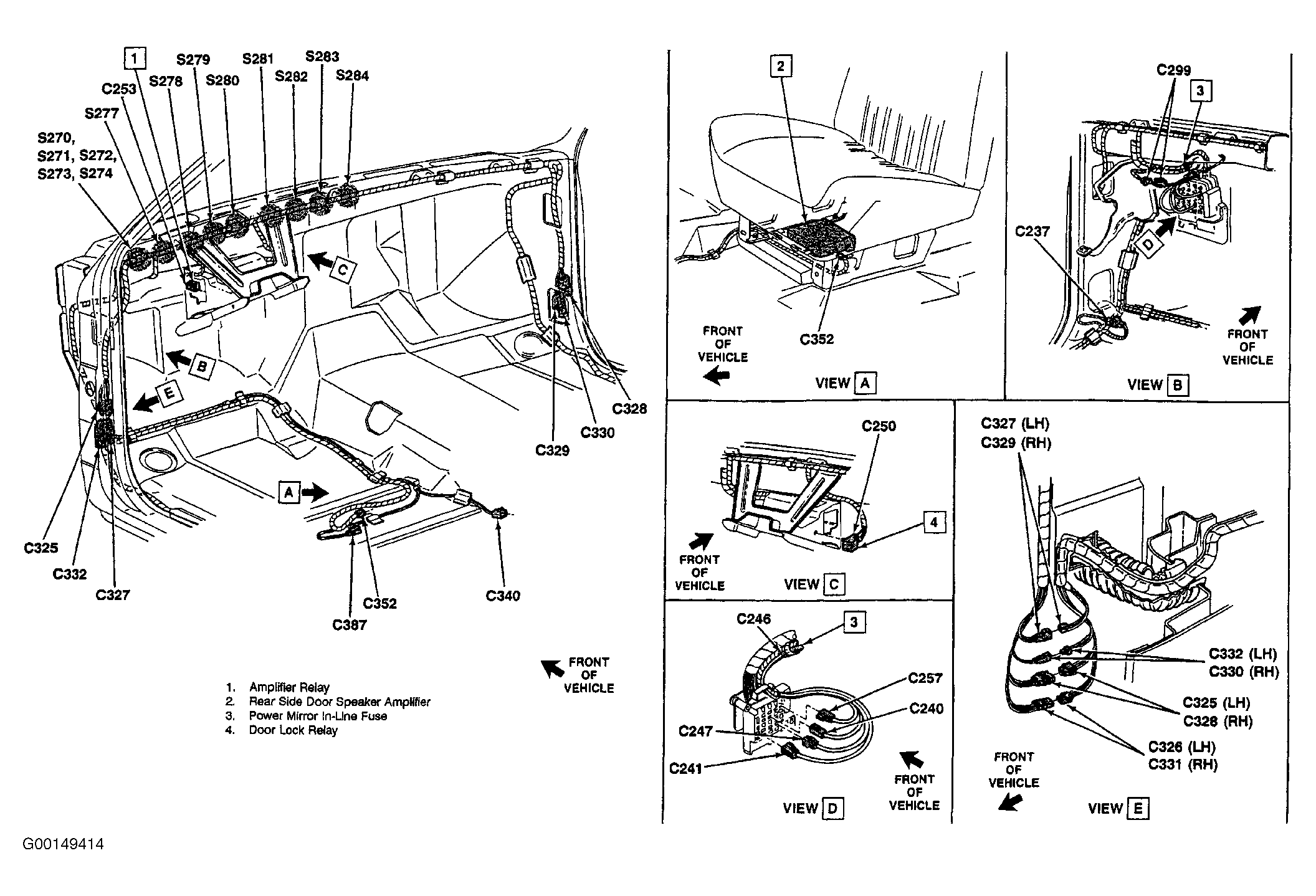 | S279 | In Power Window & Door Locks Harness, Near Convenience Center Leads. See Fig 4 . |
