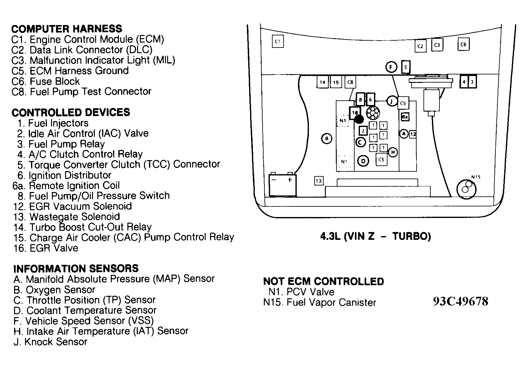 | 4.3L (VIN Z - Turbo) | Below left side of dash. See Figure . | |