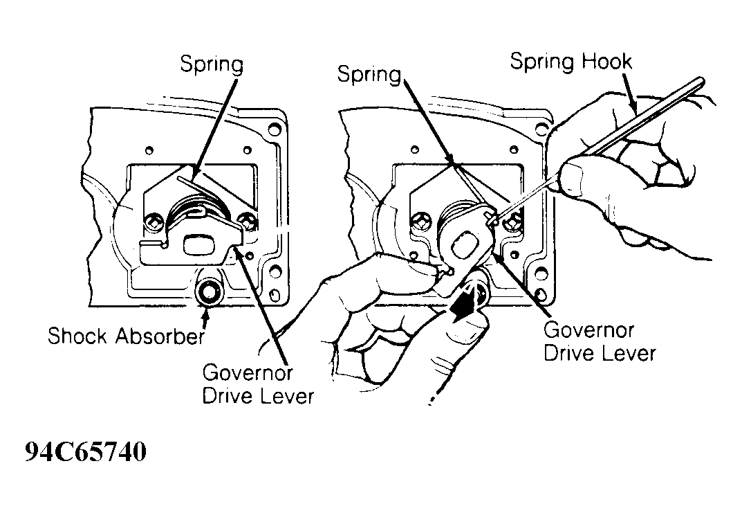 4. Rotate governor drive lever clockwise. Spring tension should be felt. Release lever. Governor drive lever should return to park position. If governor drive lever does not operate as described, recheck assembly procedure.
