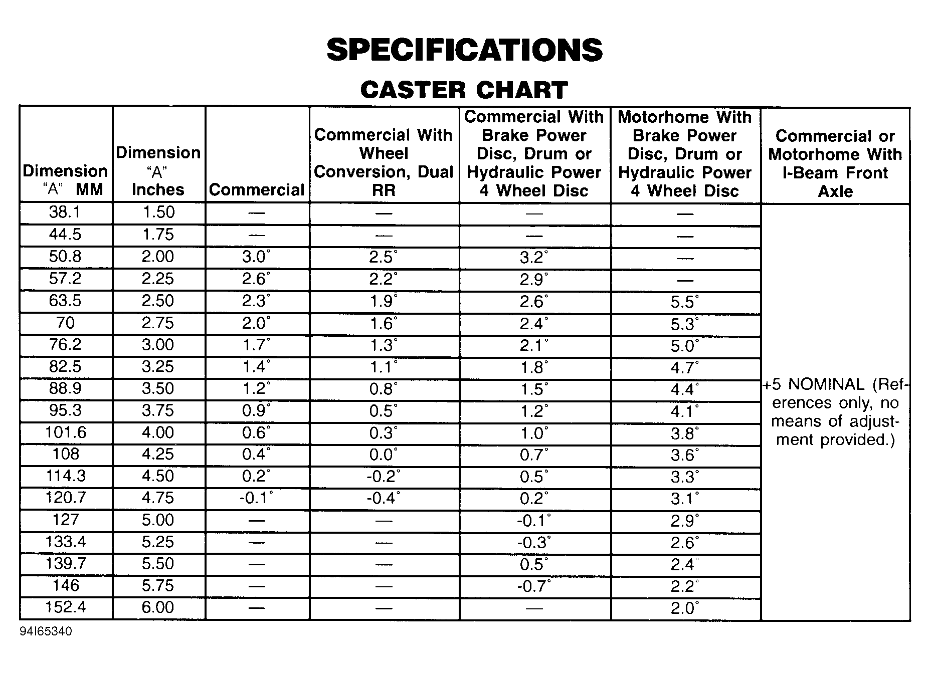 Fig 1: Caster Specifications Chart