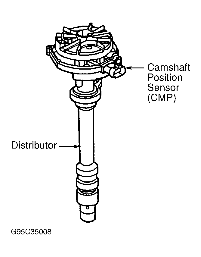 On engines with a distributor, CMP is located within the distributor. If the CMP fails, the distributor must be replaced as the distributor is unrepairable. See Fig 1. On engines with distributorless ignition, CMP is located in the engine block adjacent to cam. See Fig 2.