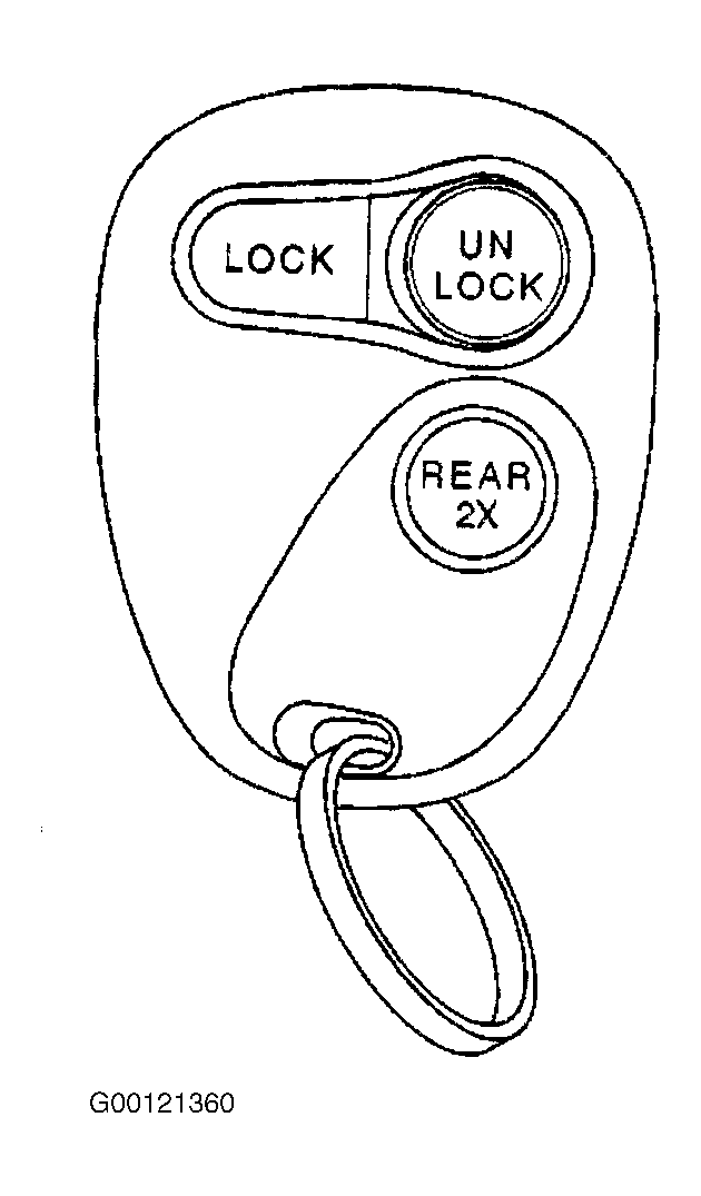 Pickup trucks use a transmitter the does not have the REAR 2X push button on the face of the transmitter. See Fig 1