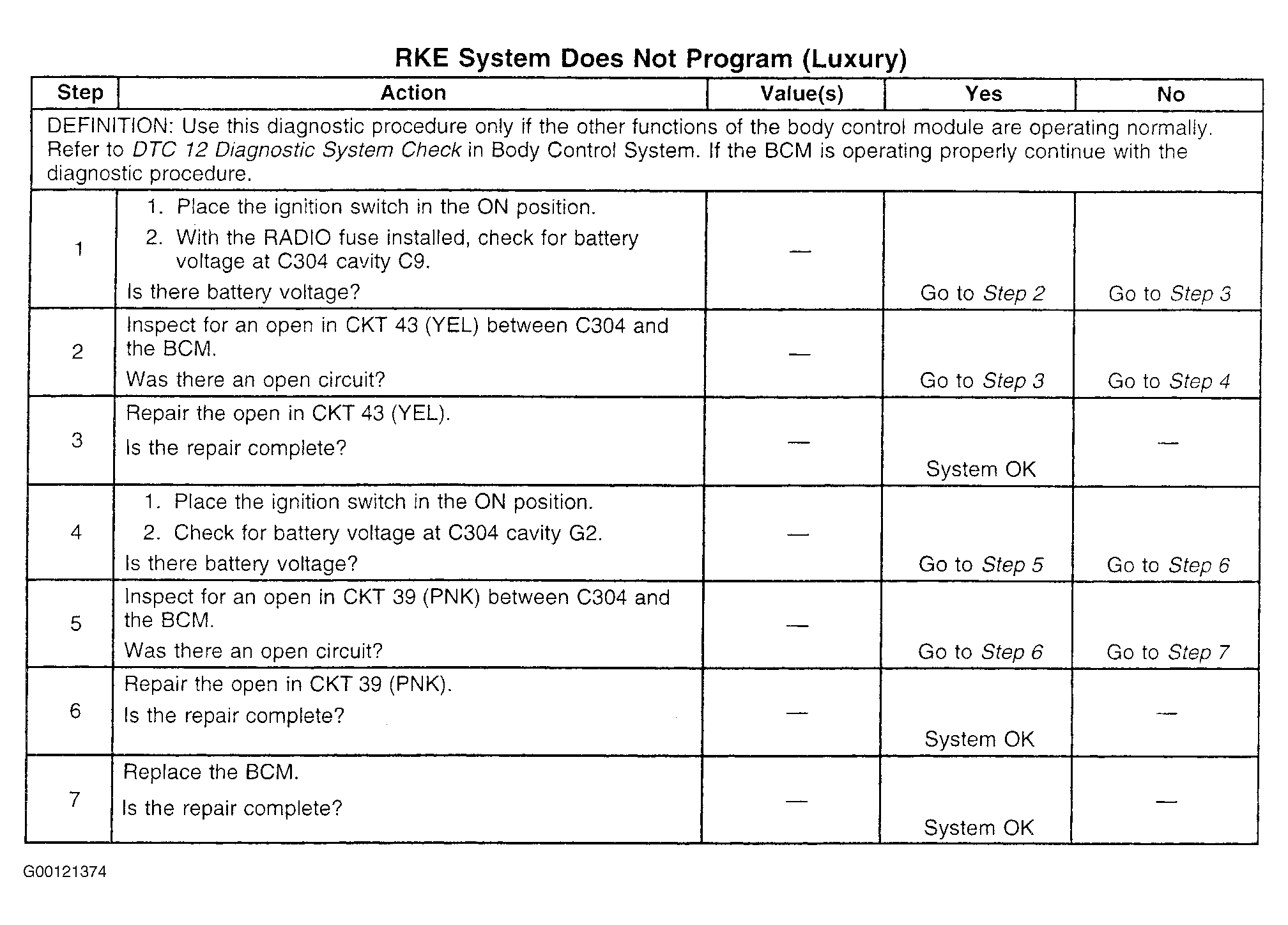 Fig 1: Test L: Remote Keyless Entry System Does Not Program (Luxury)