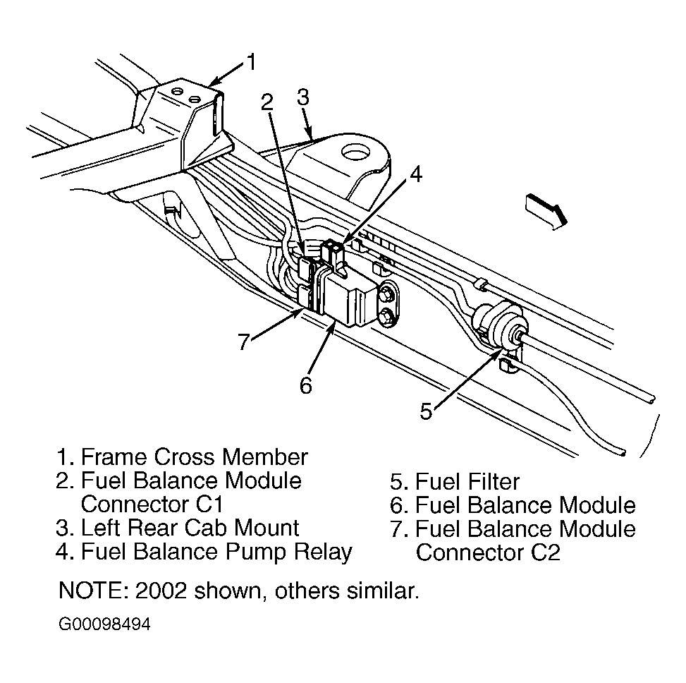 Inside Left Side Of Frame Rail Near Transmission Crossmember