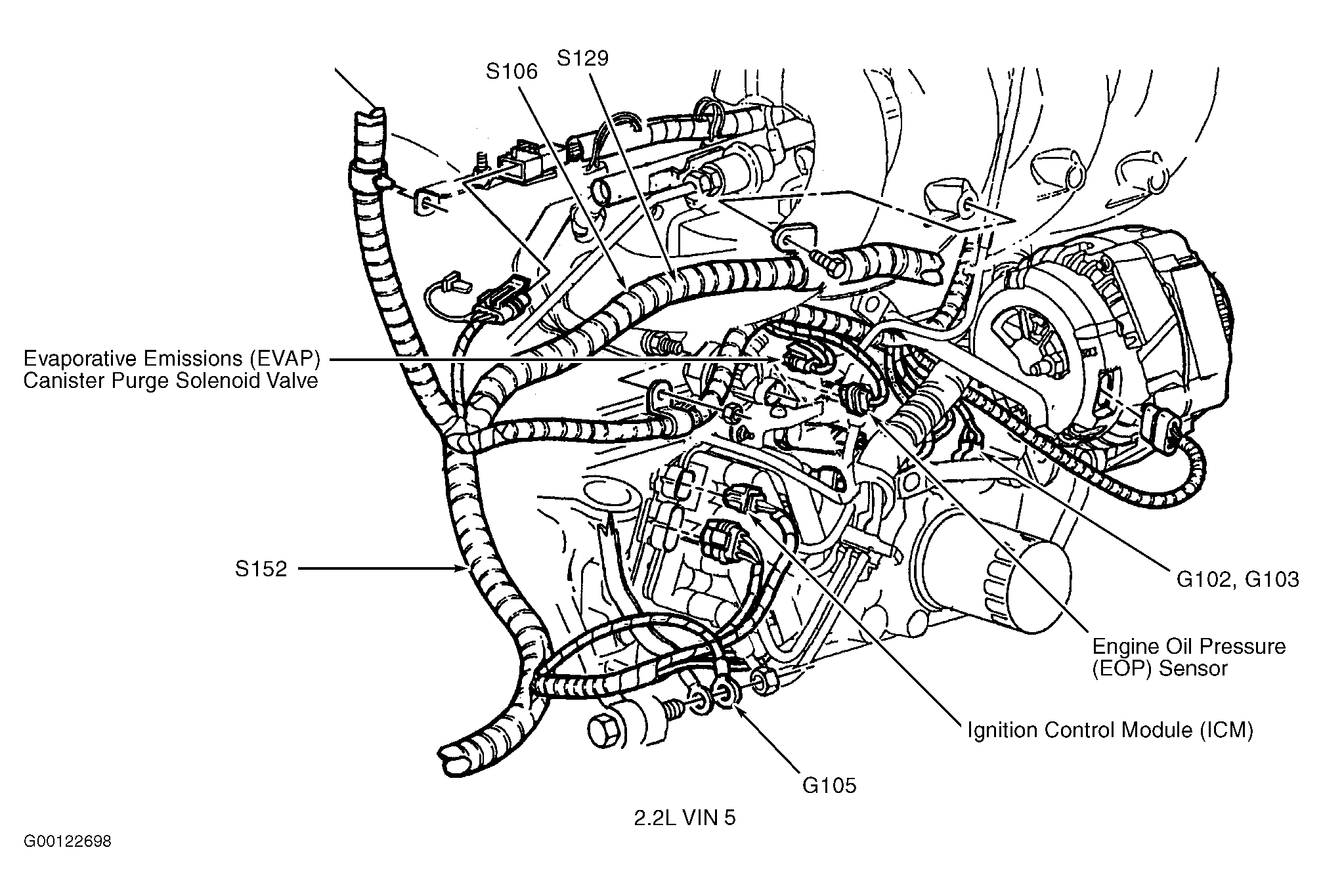 | Ignition Control Module (ICM) (2.2L VIN 4) | On right side of engine, near camshaft position sensor. Part of ignition coil assembly. See Figure . |