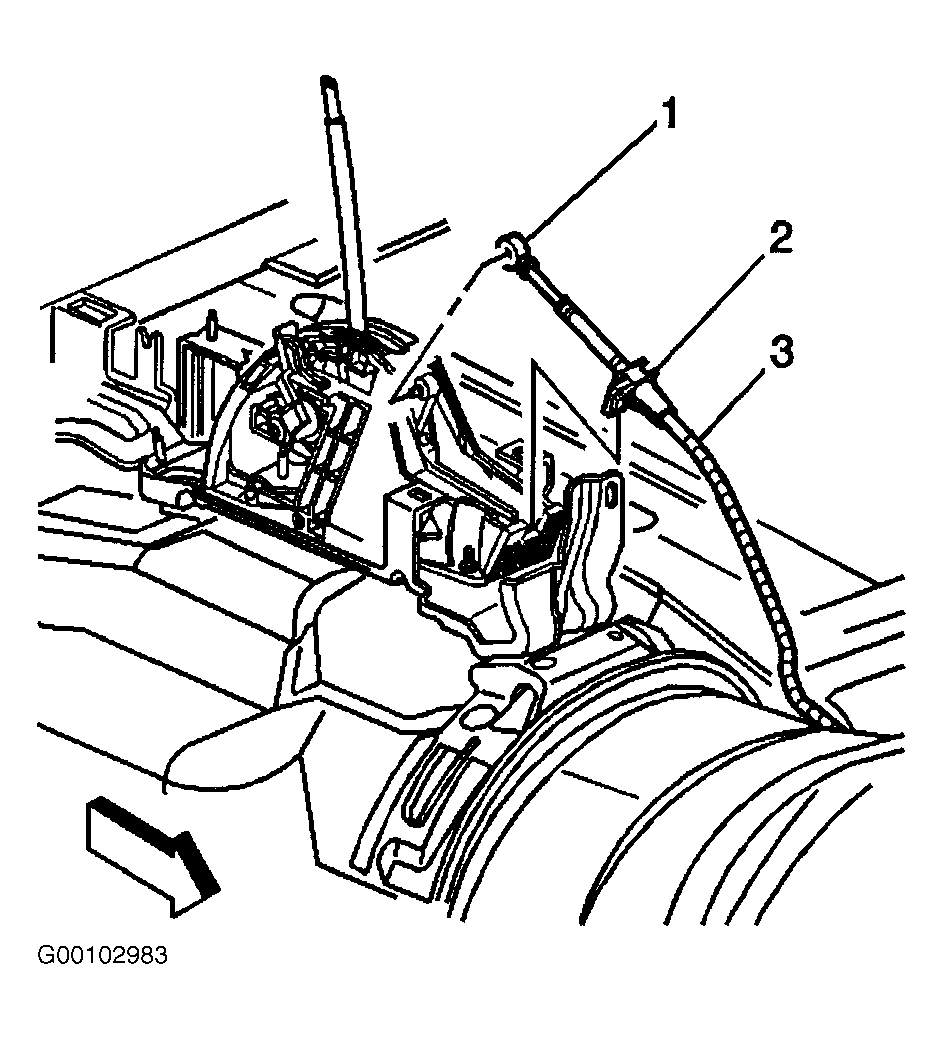 - Install the range selector cable (2) to the floor shift control. See Fig 1