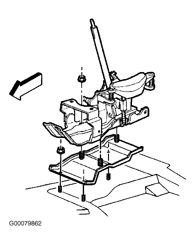 - Install the floor shift control to the floor panel. Install the nuts securing the shift controller to the floor panel. Tighten the nuts to 18 INCH lbs. (25 N.m). See Fig 3. Install shift lock solenoid connector. See Fig 4.