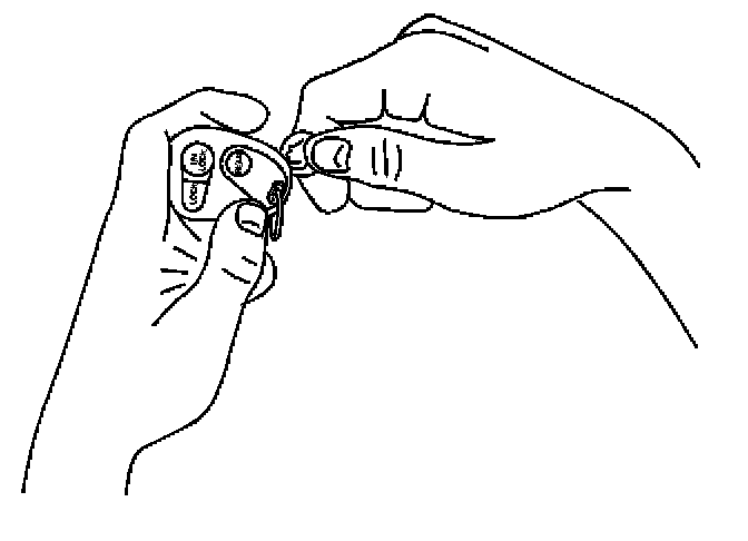 1. Insert a small coin between the 2 halves of the transmitter case at the slot provided near the key ring hole.