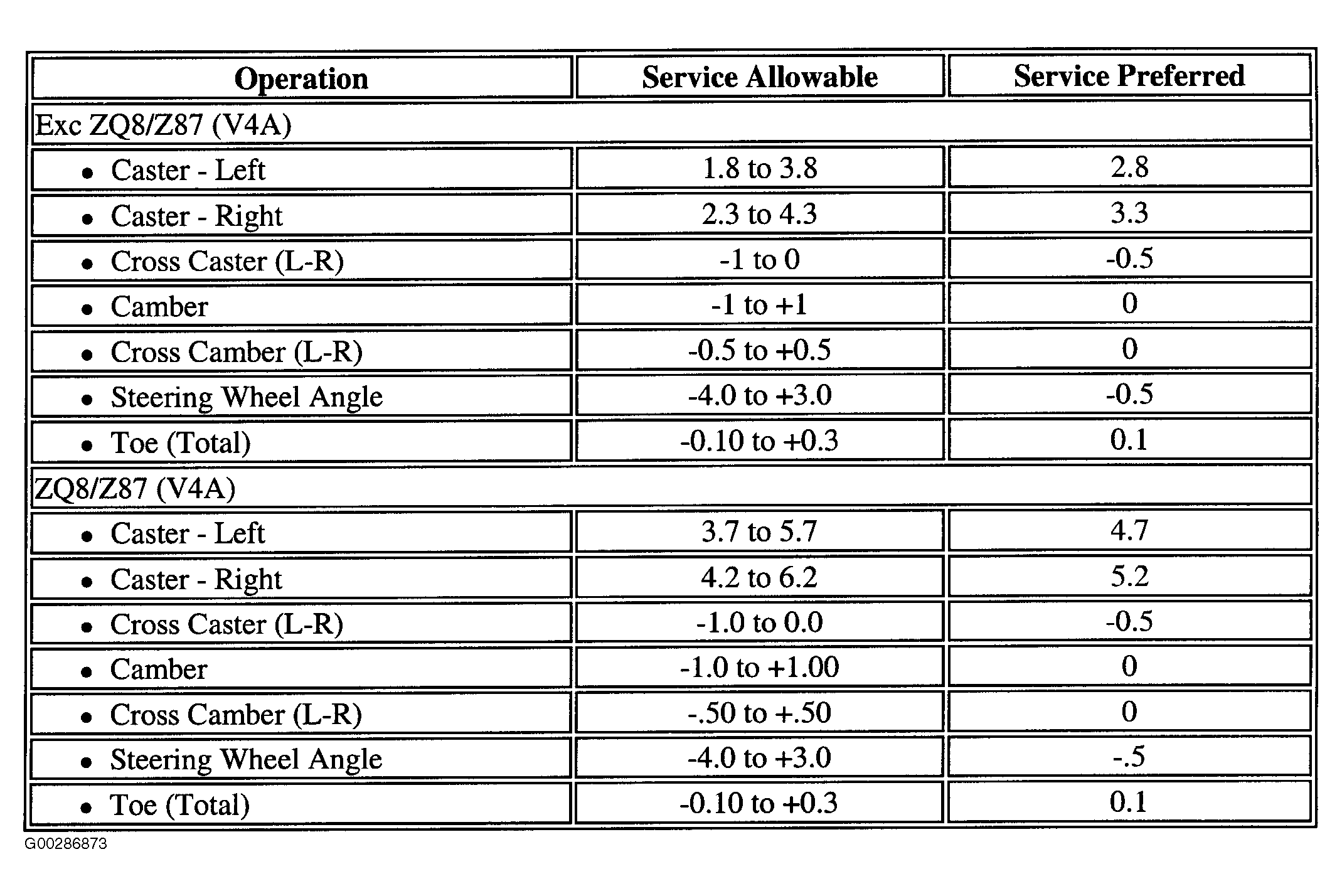 Wheel Alignment Specifications