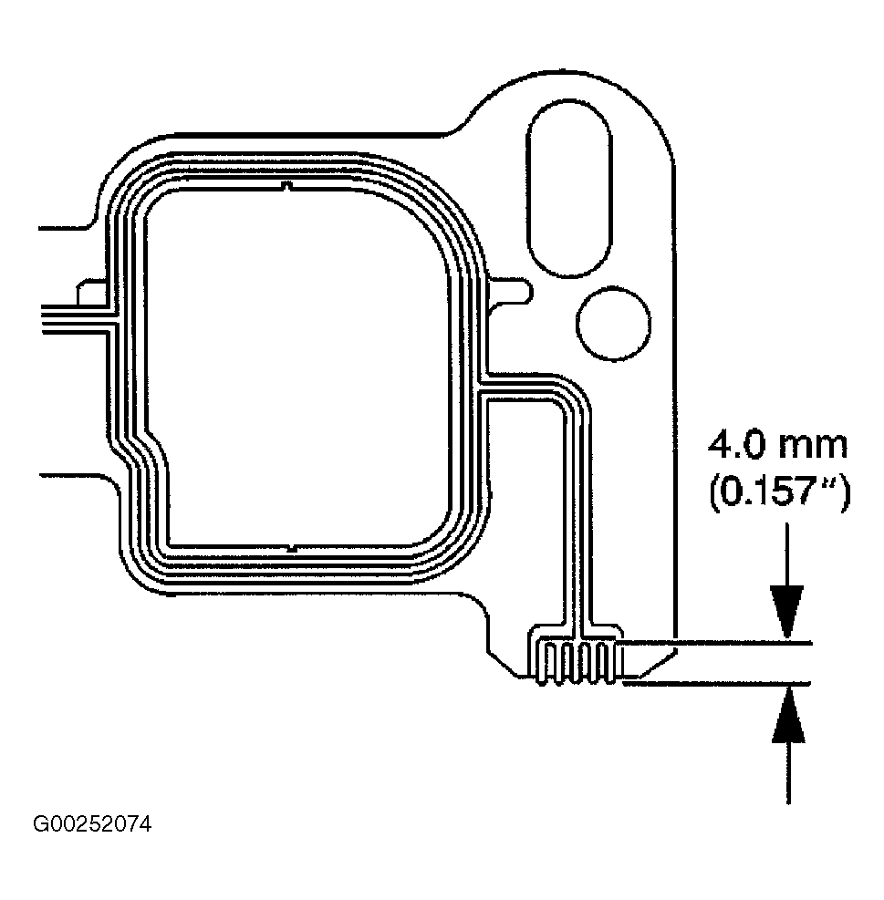 - Apply a 0.157" (4.0 mm) patch of Adhesive GM 12346141 (Canadian P/N 10953433) to the cylinder head side of the lower intake manifold gasket at each end. See Fig 1. The lower intake manifold must be installed and the fasteners tightened while the adhesive is still wet to the touch.