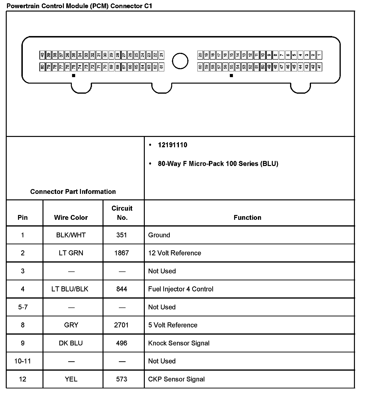 Powertrain Control Module (PCM) Connector C1 Part 3: